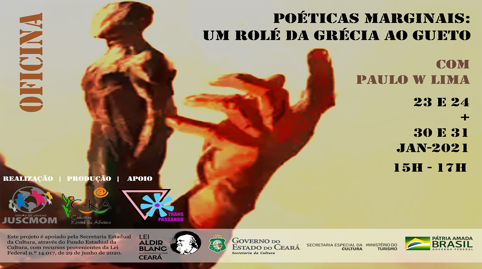 Ex-Colaborador no Programa de Extensão de combate à transfobia e demais preconceitos, Transpassando UECE, atuando como produtor, professor e coordenador pedagógico da formação básica sobre Língua Brasileira de Sinais – LIBRAS e da formação em Gestão Administrativa e Produção Cultural;