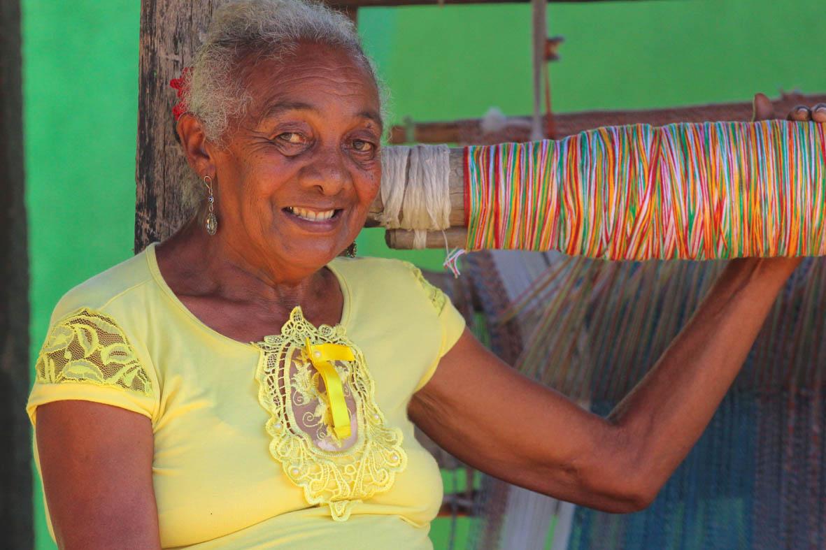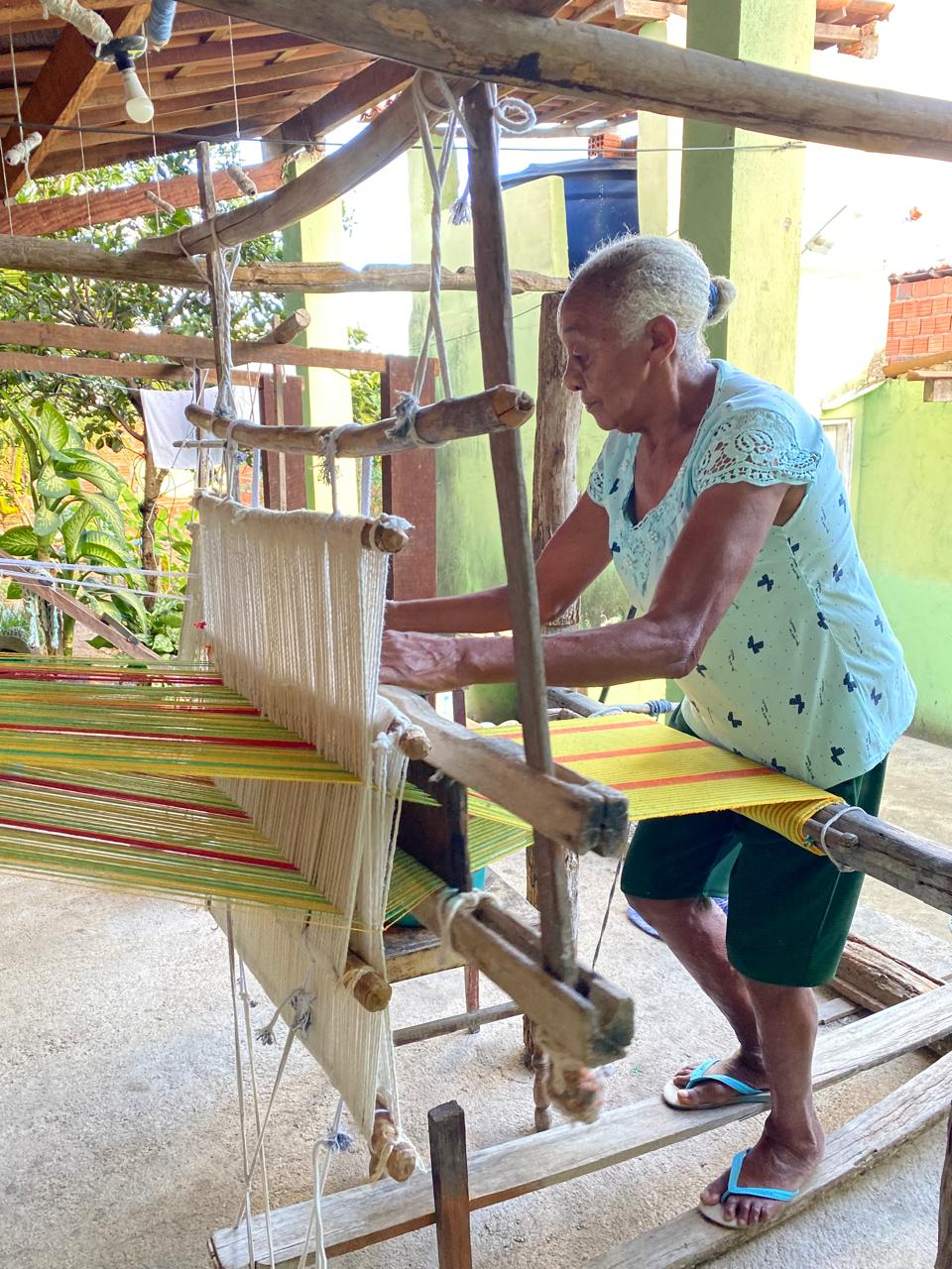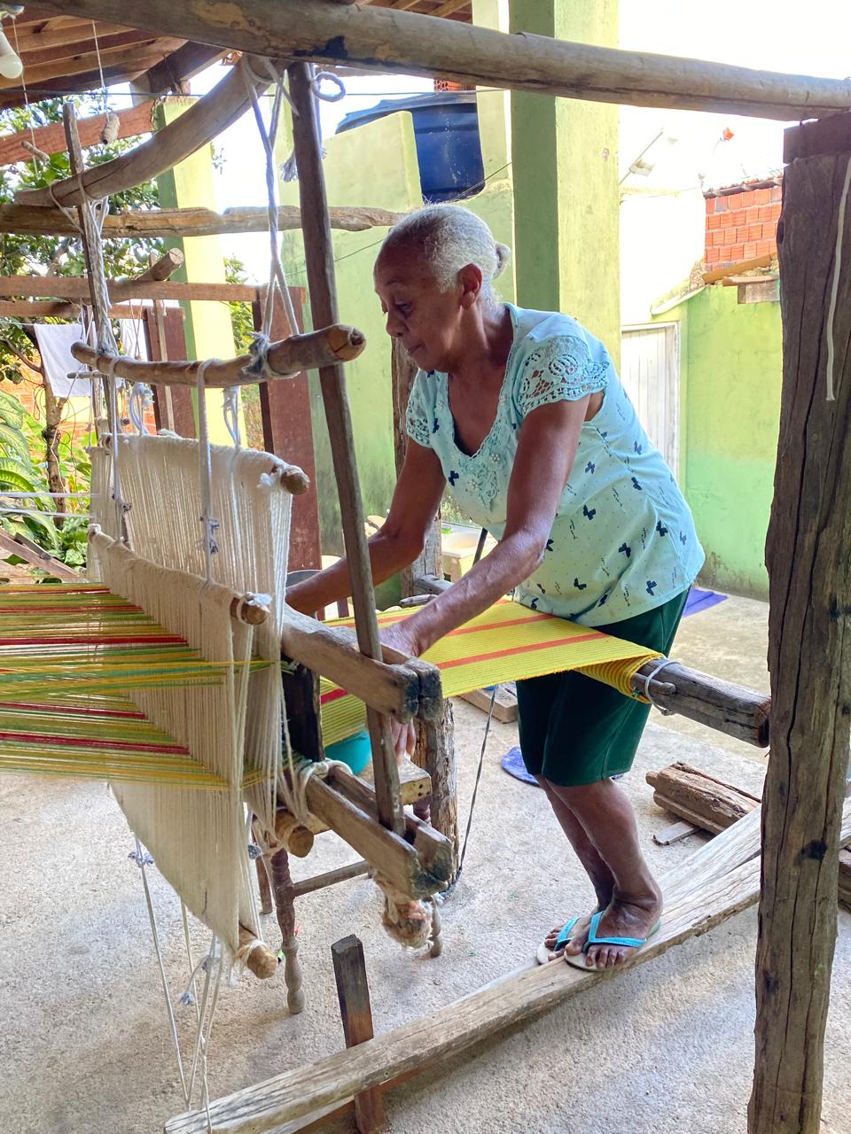 Em seu quarto, transformado em um acolhedor ateliê, Dinha exibe com orgulho suas obra. Para ela, que domina a arte da tecelagem com maestria, nenhum processo é complicado: o tempo desvendou todos os segredos e aperfeiçoou suas técnicas.