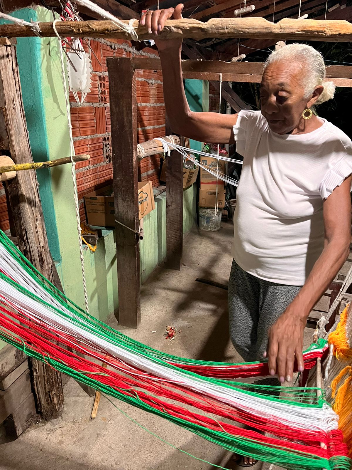 Com a sabedoria acumulada ao longo dos anos, ela viu o mundo mudar, mas manteve a arte da tecelagem intacta. Antigamente, produzia até três redes por dia. Hoje, com cuidado e atenção, dedica uma semana a cada peça. Suas redes são mais do que objetos úteis: são obras de arte que guardam a alma de Nova Olinda.