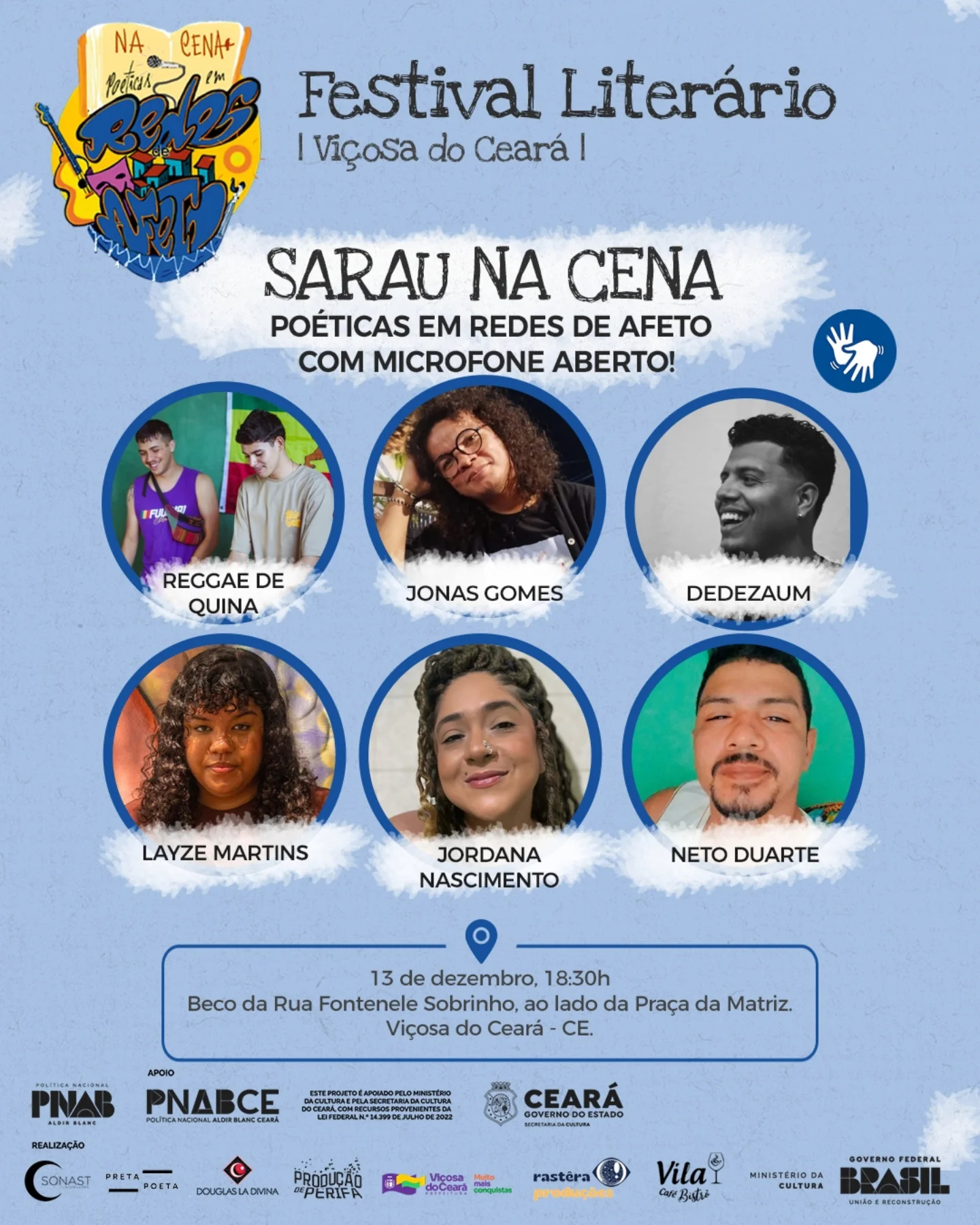 MINI BIOJonas Gomes é artista visual, músico/violonista, poeta, produtor cultural, de Viçosa do Ceará. Preto-indígena e periférico, licenciado em música pela Universidade Federal do Ceará (UFC), atua no cenário cultural desde 2015, quando convidado a expor na Mostra de Dança Inquieta (Sobral, 2015). Autor das obras: Museu do Declínio, Corpos Dissidentes: identidade e pluralidade em evidência (obras visuais) e do livro Para ler e jogar fora.