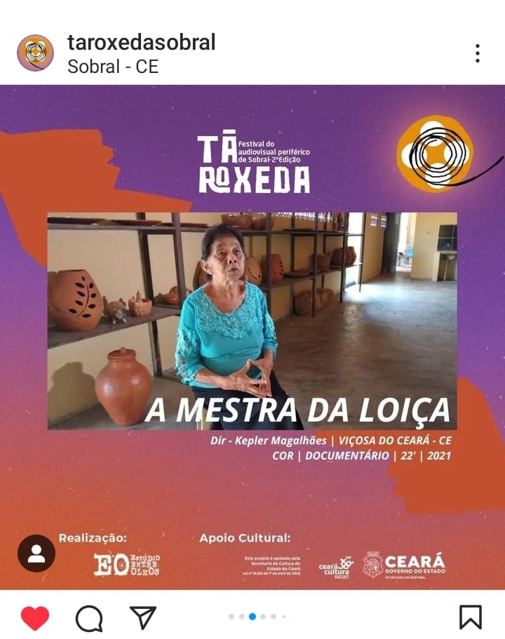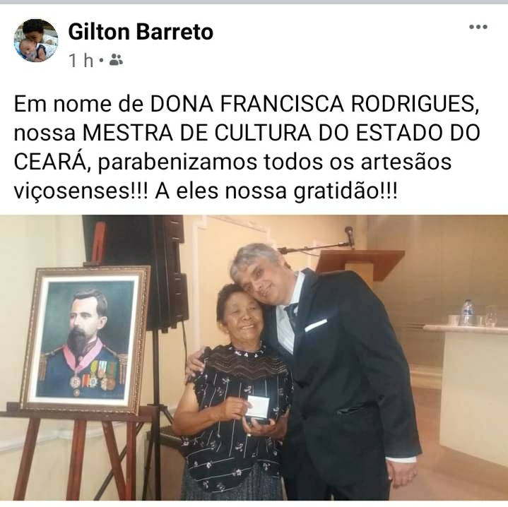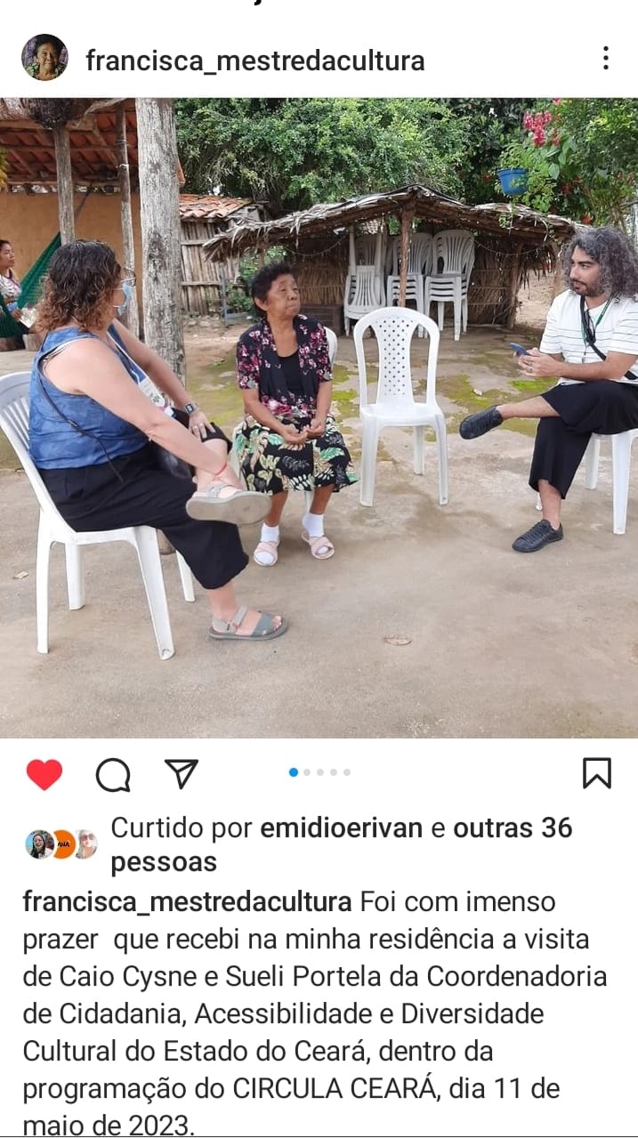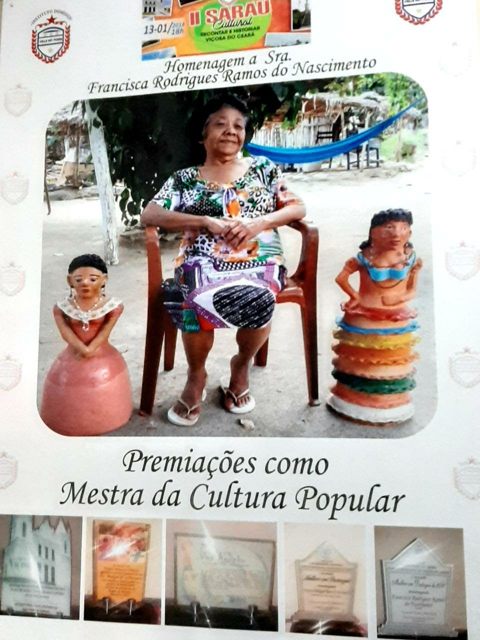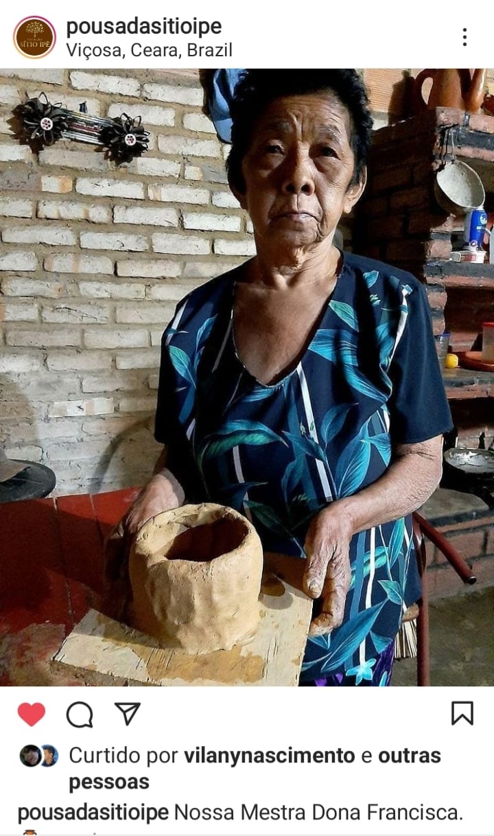 DONA FRANCISCA É REFERENCIA NA IBIAPABA POIS ALÉM DE SER MESTRE ARTESÃ TAMBÉM É GUARDIÃ DE INÚMERAS HISTÓRIAS TÃO BEM CONTADAS E QUE NOS LEVA A VIAJAR E VOLTAR NO PASSADO COMO SE ESTIVÉSSEMOS VIVENDO O MOMENTO. ELA CONTA COM ORGULHO, NO SEU QUINTAL CHEIO DE ENCANTOS E PEÇAS RARAS PRODUZIDAS POR ELA, SUA TRAJETÓRIA E DE COMO SUA ARTE AJUDOU NA CONSTRUÇÃO DA FAMÍLIA E DA PRÓPRIA COMUNIDADE.Vídeos