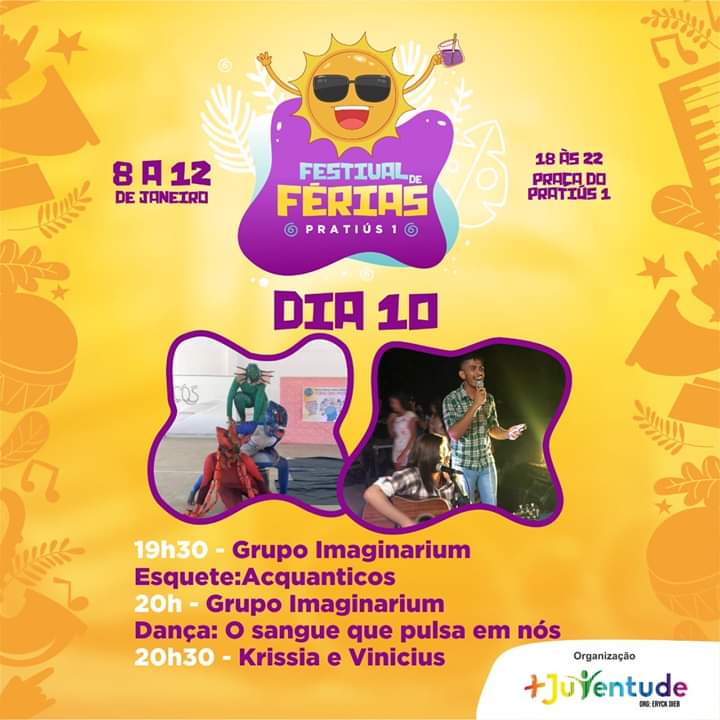 Eu sou Eryck Dieb, atuo no teatro desde os 3 anos. Comecei no grupo Zingaro. Aos 16 anos, fundei juntamente com 10 o grupo de teatro de rua e dança contemporânea Heavens. O grupo além de muitas apresentações na cidade de Pindoretama e fora dela, ganhou prêmios em festivais e chegou a gravar um filme na praia de Batoque, nos anos de 2012 e 2013. O filme nunca foi lançado por falta de recursos financeiros.De 2016 para hoje, o grupo não existe mais, mas cada membro seguiu fortalecendo o que havia de melhor e ganhando outras profissões. Eu, continuo no ramo da cultura, desenvolvendo o projeto +Juventudes desde 2017 que potencializa a dança, os ritmos e proporcionando eventos culturais, nos distritos de Pratius 1 e 2 e Coqueiro do Alagamar.