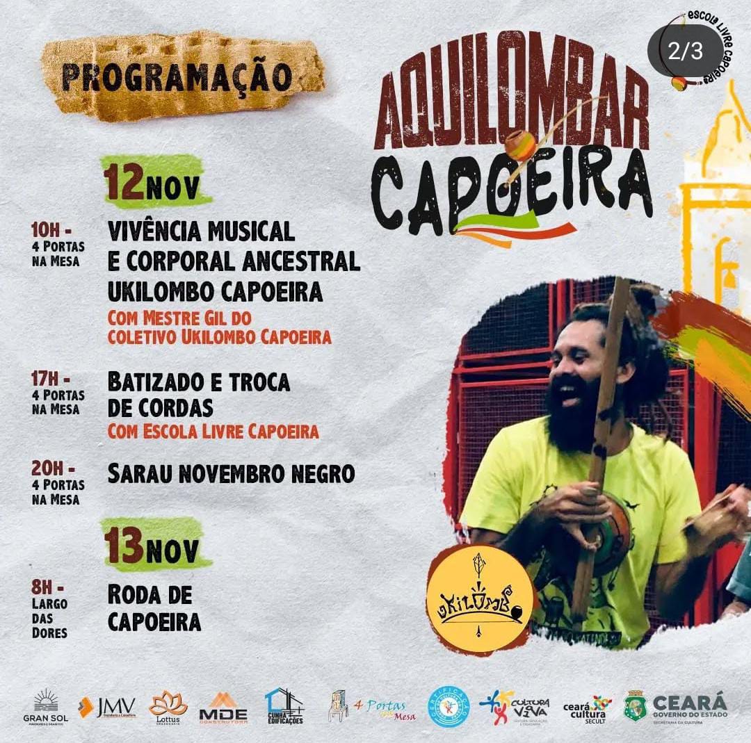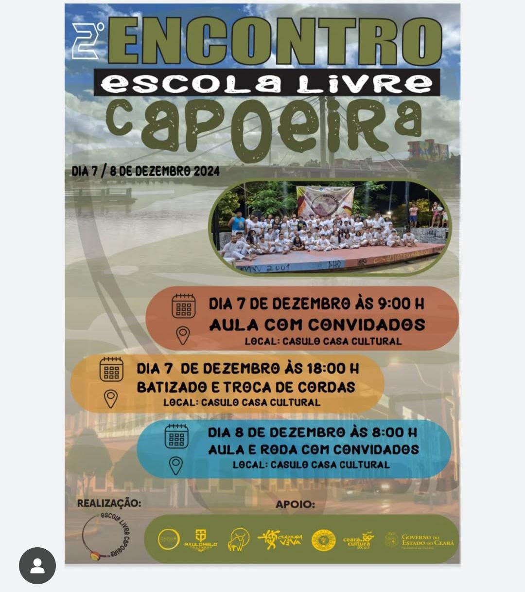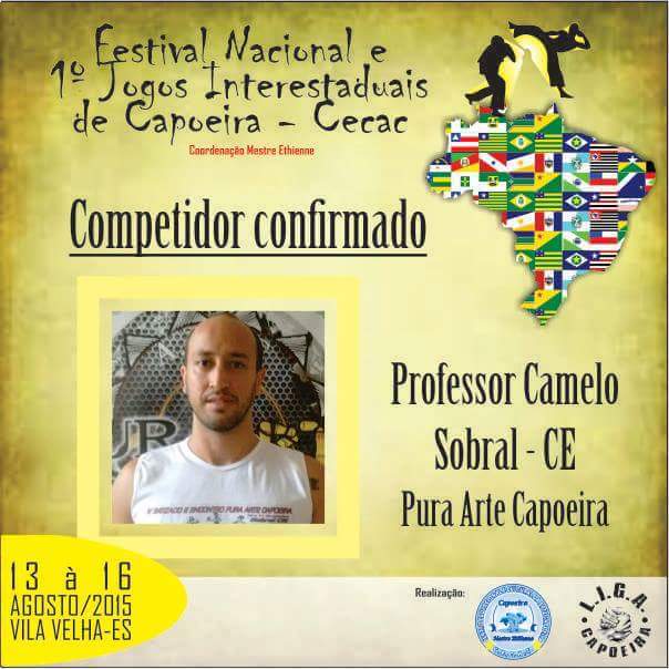 Contramestre Camelo capoeirista com mais de 23 anos de prática no ensino/aprendizagem da capoeira. Responsável pelo trabalho da Escola Livre Capoeira em Sobral. Desenvolve um trabalho com capoeira e suas manifestações artísticos - culturais no Largos das Dores a mais de 15 anos ocupando o local com treinos e práticas de ensino - aprendizagem da capoeira. Realiza também trabalho de capoeira na Casa 4Portas e um dos responsáveis do coletivo cultural de capoeira que realiza a gestão e a produção do Ponto de Cultura Capoeira Sobral. um dos membros fundadores da Liga Sobralense de Capoeira sendo Vice presidente da entidade e participante do Fórum da Capoeira Sobralense sendo um dos idealizadores. Capoeirista e competidor tendo participação em varias competições a nível nacional como competidor e como jurado.Vídeos