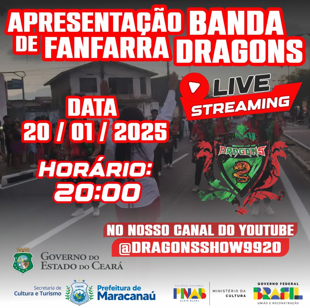 Banda de fanfarra Dragons show, fundada em 2017, para desfiles festivais e semana da patria, possue 70 integrantes musicos, representa o municipio em grandes eventos no unicipio e regiao metropolitana.Vídeos