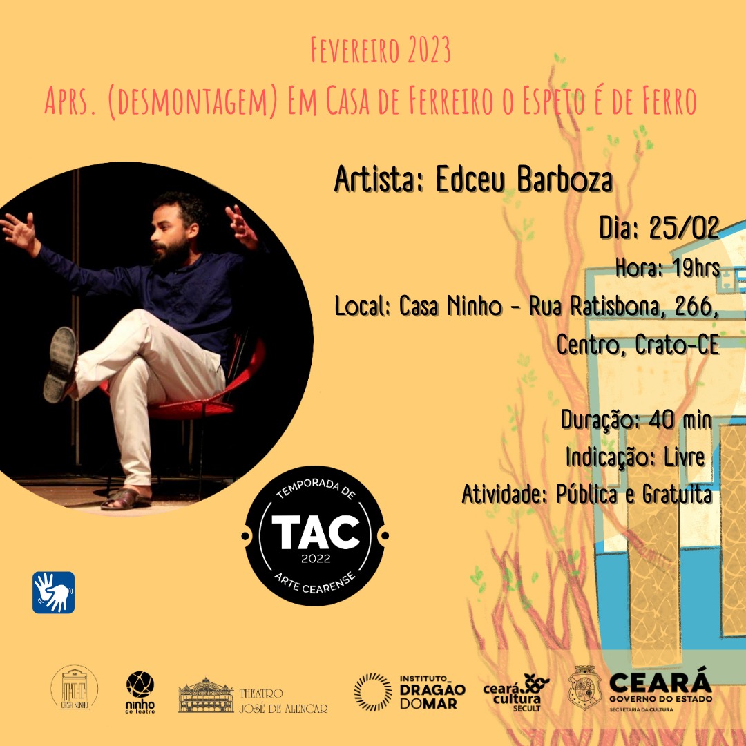 O Grupo Ninho de Teatro tem 15 anos de atuação no interior do Ceará. Constituído como grupo de teatro no ano de 2008, e como Associação e Produtora Artística em 2009, criou até então um repertório com oito montagens de espetáculos e dois filmes: Bárbaro (2008), Avental Todo Sujo de Ovo (2009), Charivari (2009), O Menino Fotógrafo (2012), Jogos na Hora da Sesta (2012), A Lição Maluquinha (2013) e Poeira (2016), Cabras [experimento] (2021), Fractais (2021) e Cabras (2022).Em julho de 2011, abriu as portas da sua sede: a Casa Ninho. Cerificada como Ponto de Cultura em 2019, desde então, a Casa tem abrigado cotidianamente espetáculos, ensaios, reuniões e mostras de artes. Há doze anos promovendo ações artísticas e culturais, a Casa é o único espaço cênico (não público) da cidade do Crato com estrutura luminotécnica.