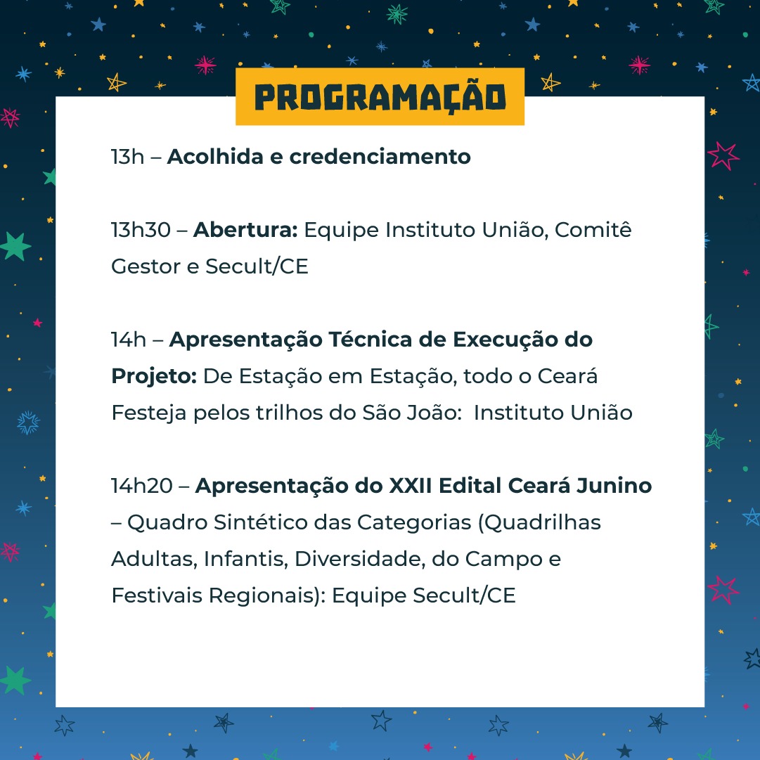 13h30 – Abertura: Equipe Instituto União, Comitê Gestor e Secult/CE