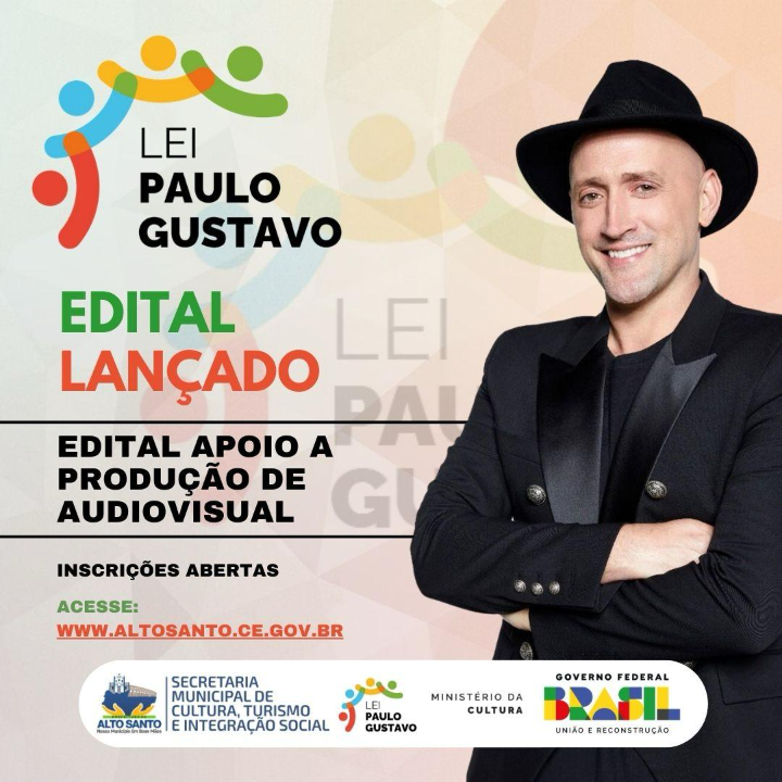A Prefeitura Municipal de Alto Santo, por meio do Secretaria de Cultura, Turismo e Integração Social, no uso de suas atribuições legais, torna público o processo de inscrição e seleção pública que regulamenta o EDITAL 03/2023 - APOIO A PRODUÇÃO DE AUDIOVISUAL DE ALTO SANTO-CE.